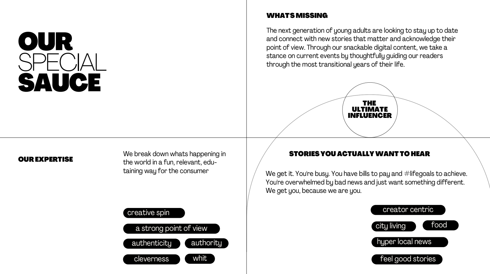 We had the pleasure of working with the team of visionary new media mavens and ambitious young journalists to create their brand strategy and brand identity along with messaging, vibe and content strategy.